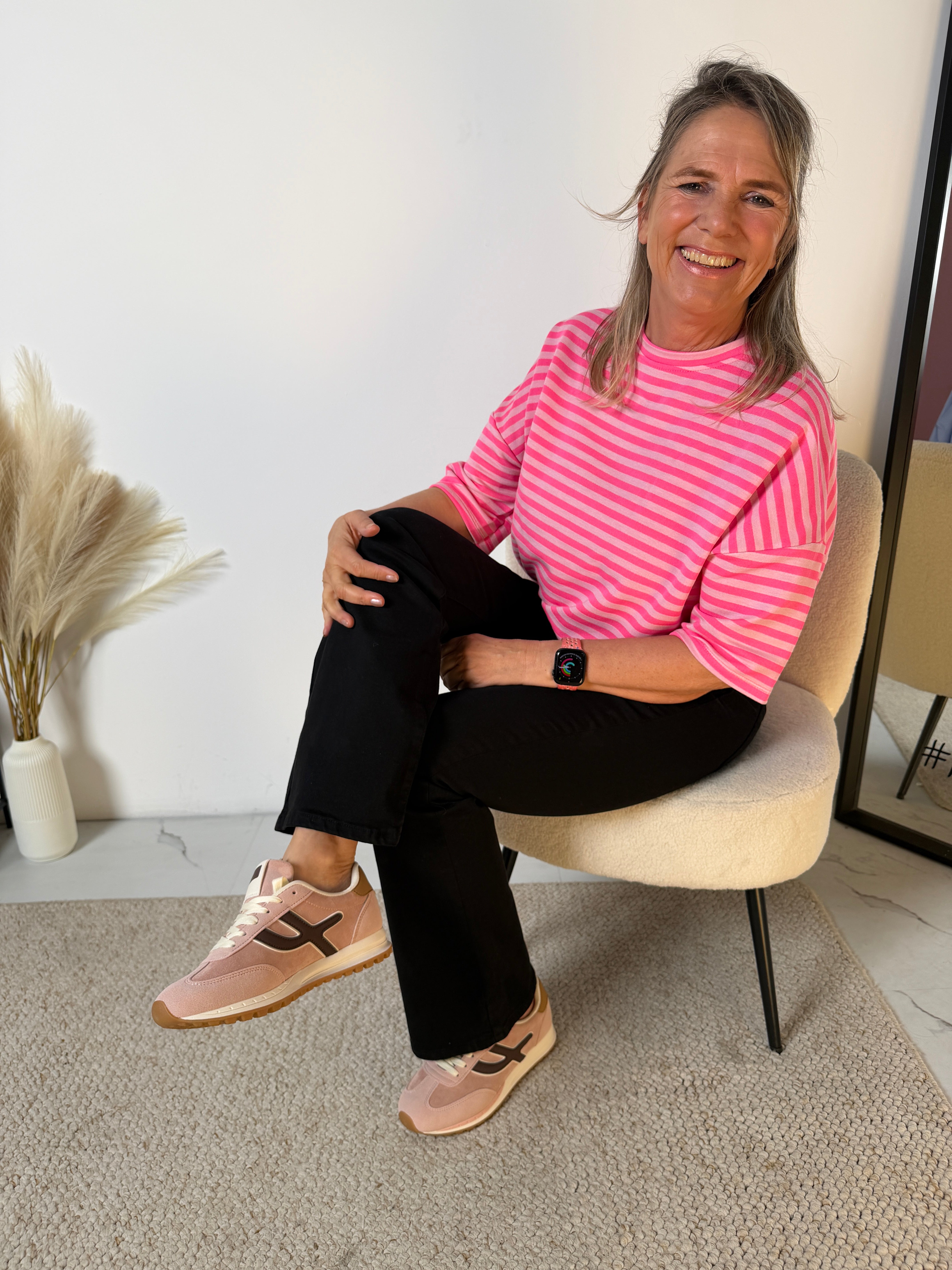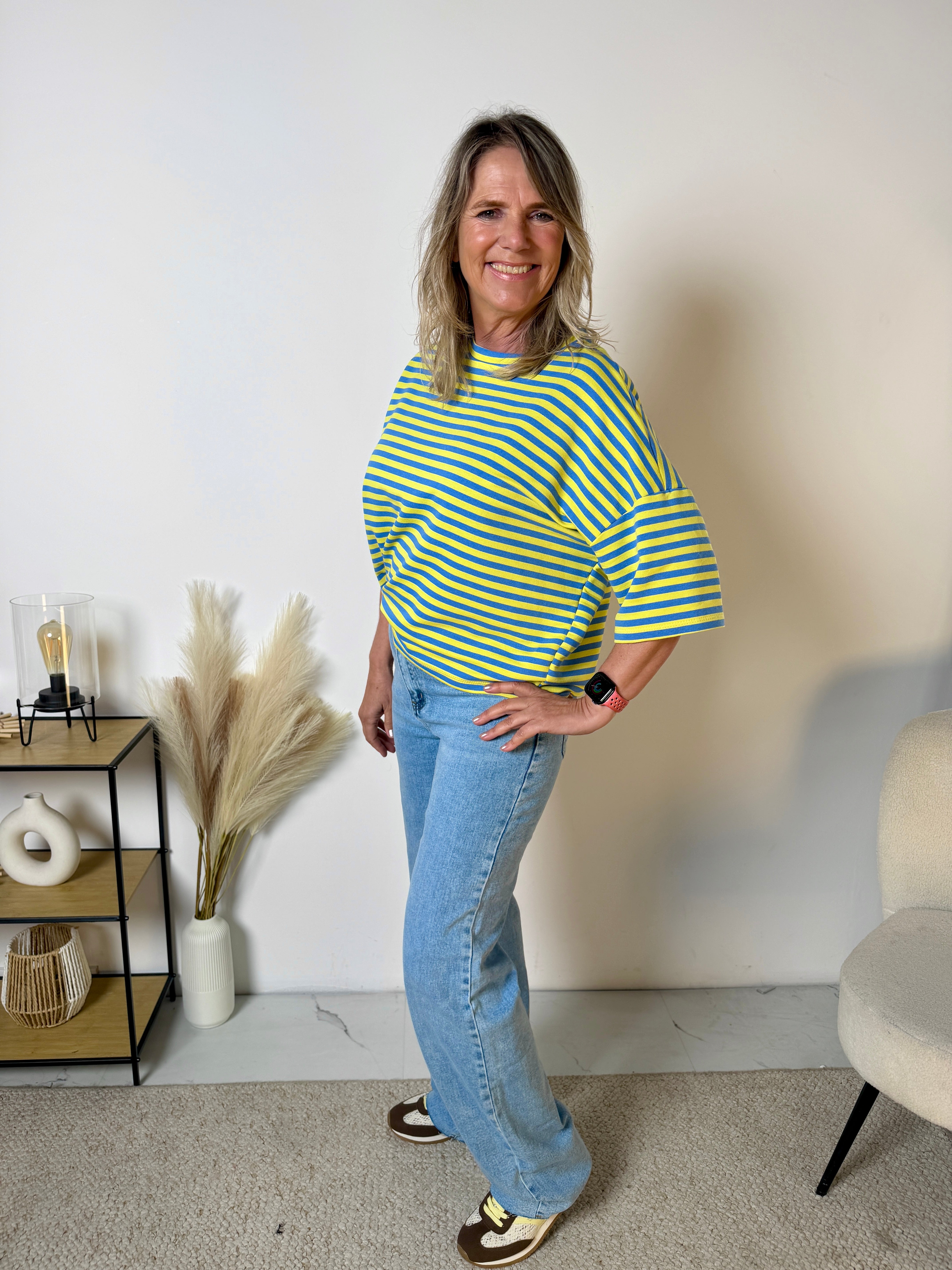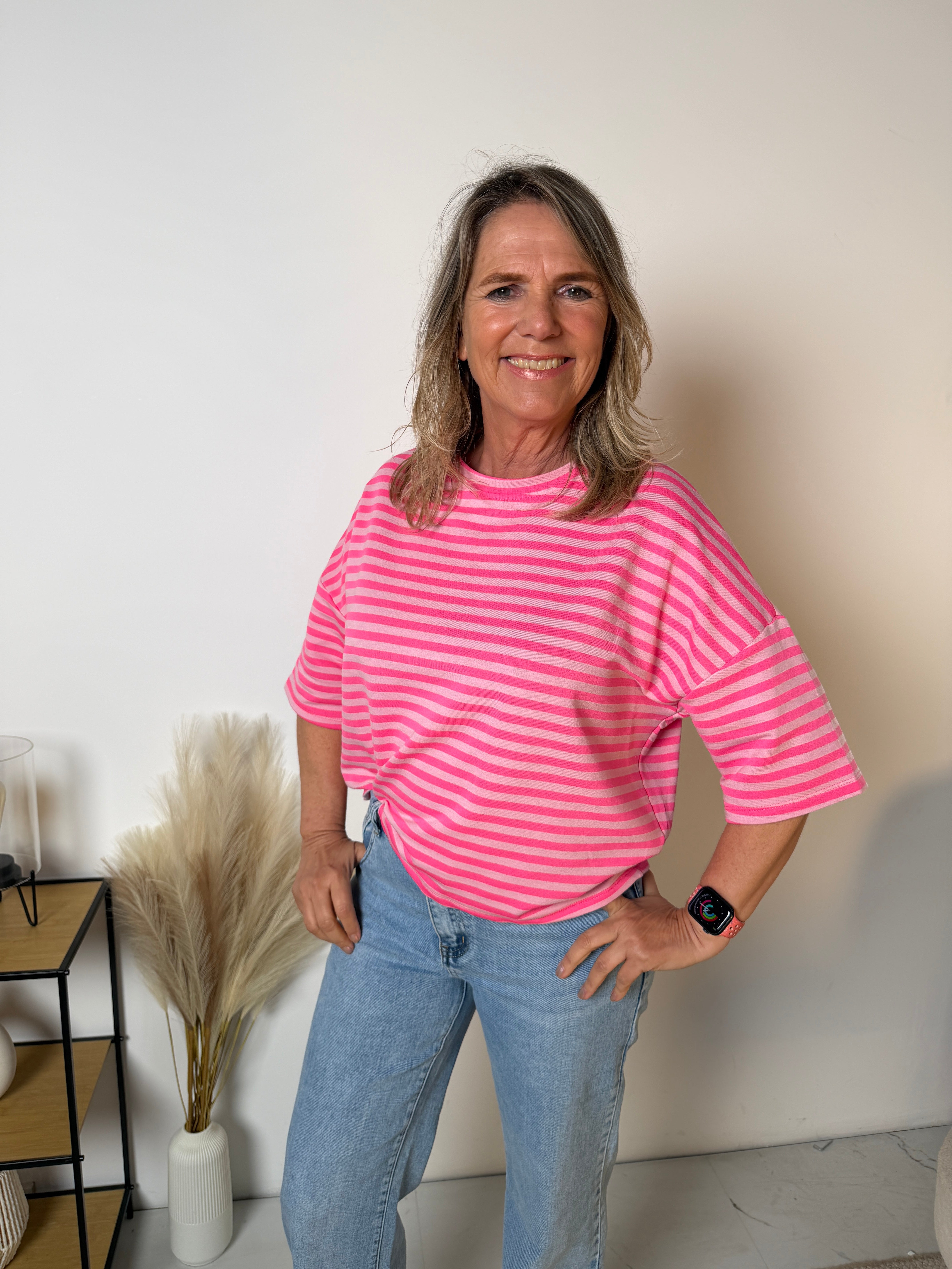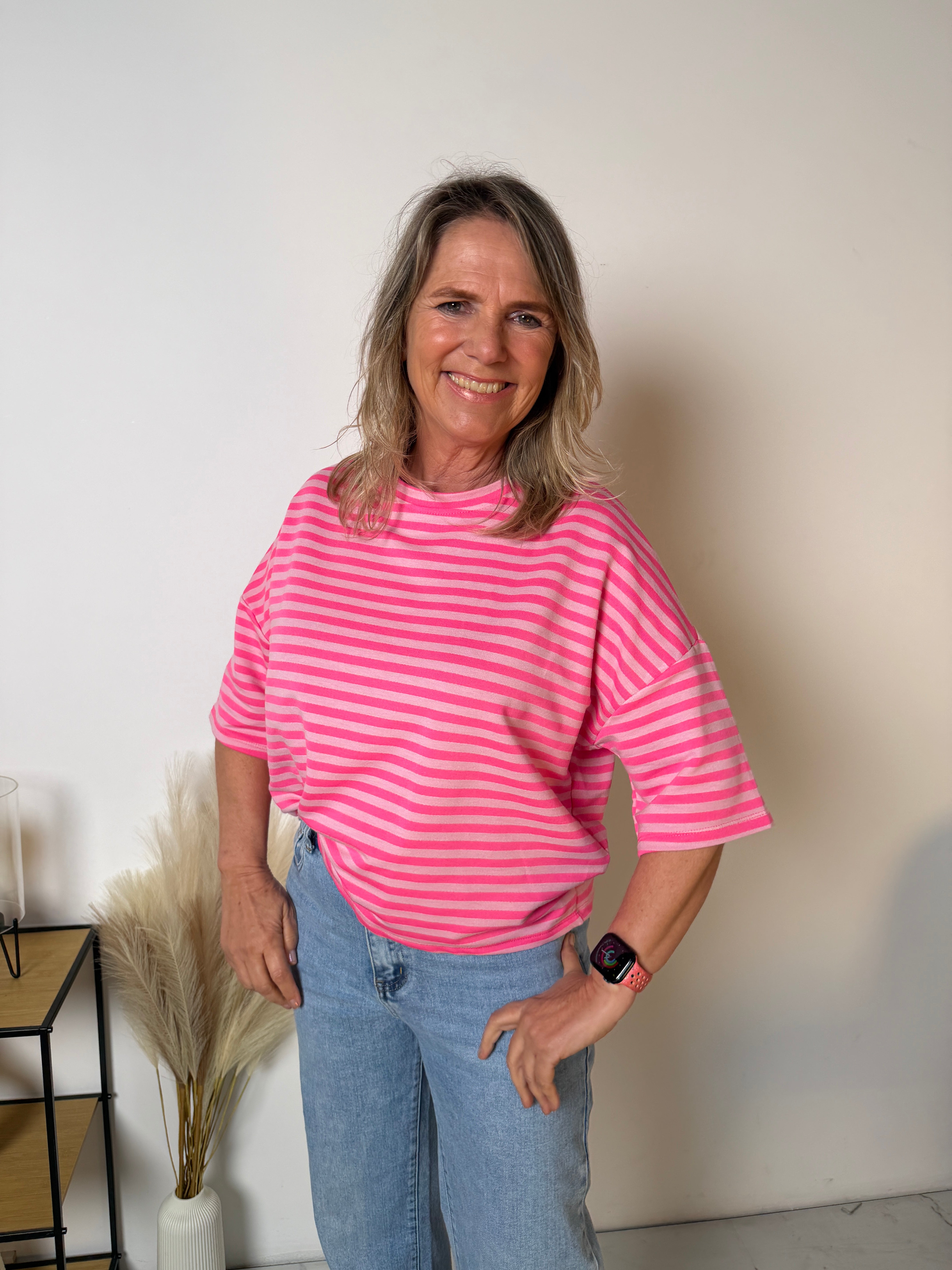 Het Stripe T-shirt is een echte eyecatcher dankzij de frisse streepprint en de trendy loose fit. Dit model combineert comfort met een speelse, moderne uitstraling en is perfect voor een casual maar stijlvolle look.