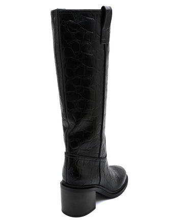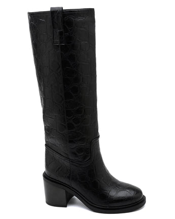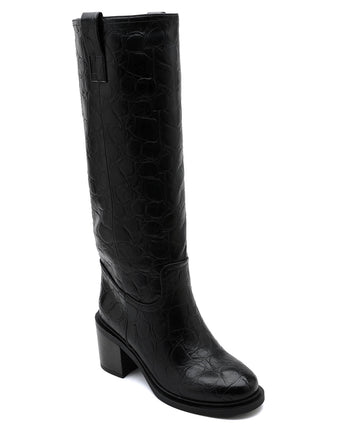 Maak een statement met onze Suuz High Boots. Deze hoge laarzen zijn uitgevoerd in een prachtige croco-look en hebben een stevige blokhak van 6 cm. De perfecte mix van stoer en stijlvol, of je ze nu draagt onder een jurkje of over een skinny jeans.